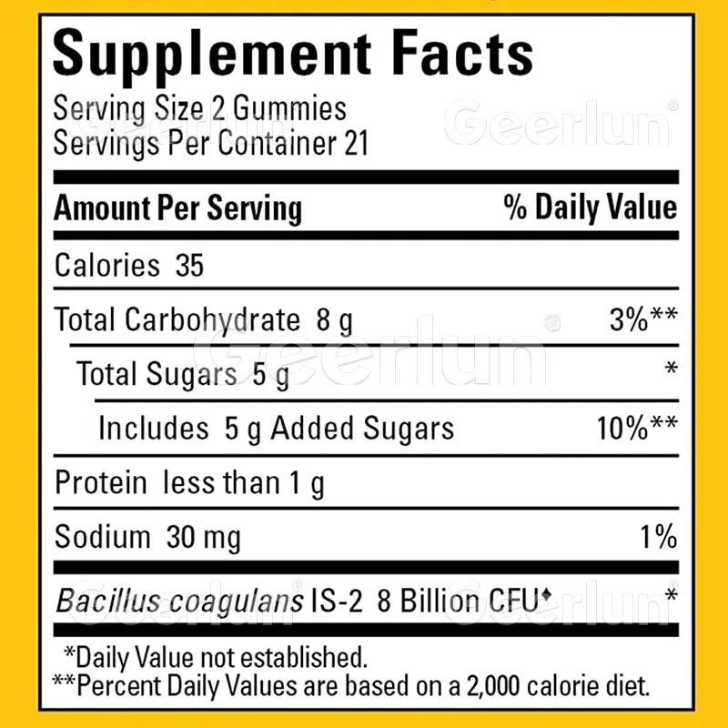 Geerlun probiotics Gummies are a tasty, chewable supplement designed to deliver essential probiotics that promote a balanced gut microbiome. Each gummy contains billions of live cultures from strains like Lactobacillus and Bifidobacterium, known for their beneficial effects on digestion and immune support.