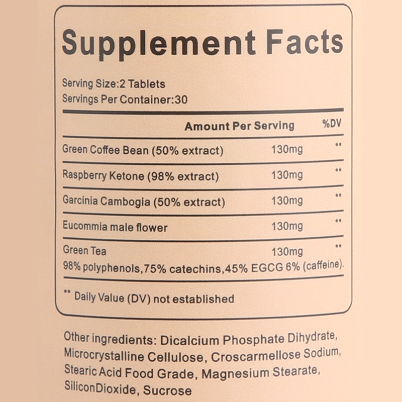 ☑ Green Coffee Bean Extract (50%): Each serving contains 130mg. Green coffee beans are widely believed to help boost metabolism and promote fat burning.